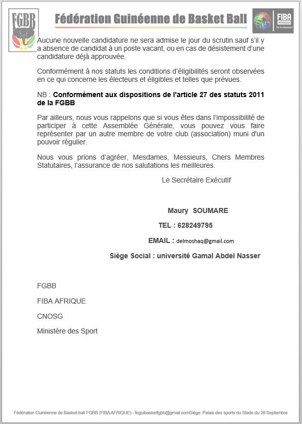 Dans la même logique, les membres statutaires du camp Amadou Tafsir Camara ont également adressé un courrier aux différentes institutions en charges des sports à savoir : le ministère en charge des sports, le comité national olympique et sportif de Guinée, la FIBA-Afrique et Monde…