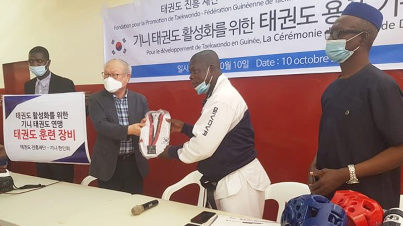 Conakry le 10 octobre 2020 / La coopération entre la communauté coréenne résidante en Guinée et la Fédération Guinéenne de Taekwondo se poursuit. Ce samedi dans la salle de la fédération Guinéenne de Karaté, L’ONG Fondation pour la promotion de Taekwondo